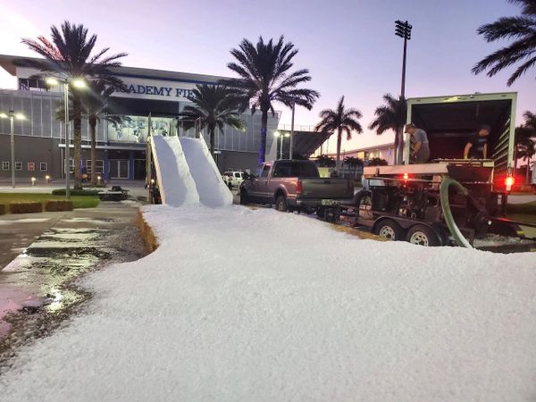 We can create snow for your holiday party, corporate event, trade show, mall events, movie shoots, music video shoots or any other kind of event. Think of it, sledding and throwing snowballs in Sunny Florida with real snow!